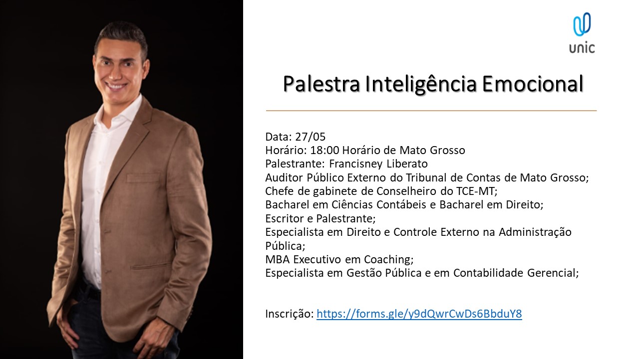 É hoje a palestra de Inteligência Emocional em parceria com a Universidade de Cuiabá – UNIC. Iniciaremos às 18h no horário de Mato Grosso. Te vejo lá! Será transmitido pelo aplicativo Team da Microsoft. Faça já a sua inscrição! #unic #unicbeirario #unicbeirario #palestra #palestrante #umpassodecadavez